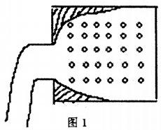 一,對(duì)凝汽器不合理的部分進(jìn)行改造。在膠球死區(qū)的位置(圖1的陰影部分)點(diǎn)焊不銹鋼金屬網(wǎng),使其成弧狀。便膠球流動(dòng),使膠球脫離死區(qū)的范圍。
