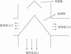 該廠通過提高收球網的位置來減少膠球在凝汽器循環水出水管中的活動空間,同時設置一個膠球導流板,如圖6所示,引導膠球進入膠球泵入口位置。