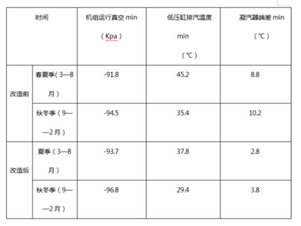 達-93.7Kpa,冬季工況時機組真空高可達-96.8Kpa,凝汽器端差小時也達到2.8°C,凝汽器換熱效率有了較為明顯的提升。