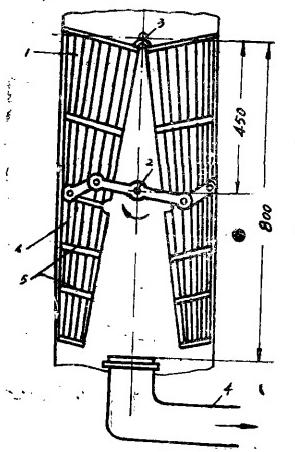 關(guān)于開關(guān)膠球清洗裝置也有二種方案,一種是現(xiàn)采用的,優(yōu)點(diǎn)是開關(guān)方便一些;缺點(diǎn)是杠桿系統(tǒng)和旋轉(zhuǎn)軸都“貫穿”循環(huán)水管,增大了水阻,即使處于“短路”狀態(tài)此水阻仍去不掉。另一種利用類似于潤門開關(guān),在收球網(wǎng)之外開和關(guān),(圖3乙)它在“短路”狀態(tài)時(shí),開啟機(jī)構(gòu)已旋出循環(huán)水管外,可減少短路時(shí)的水阻,當(dāng)然機(jī)構(gòu)稍復(fù)雜一點(diǎn),開關(guān)稍費(fèi)事。我們擬在”3機(jī)采用這種機(jī)構(gòu),以和“4機(jī)對(duì)比。