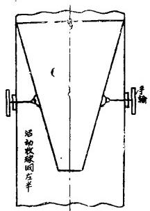 該廠試驗(yàn)使用了一種活動(dòng)式錐形收球網(wǎng)(圖甲)。它保留了錐形固定收球網(wǎng)收球效果好的優(yōu)點(diǎn)。在停用時(shí)又可以“短路”以減少水阻。(在使用時(shí)壓差0.041—0.048公斤/屬米2,在短路時(shí)壓差0.034—0.044公斤/厘米2)。收球網(wǎng)用活動(dòng)鉸在上部和循環(huán)水出水管連接,中部用杠桿系統(tǒng)開關(guān),下部和膠球清洗裝置進(jìn)水管相連。