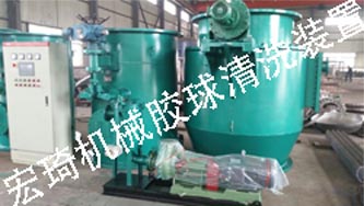 膠球清洗裝置還可以實現(xiàn)自動化運行,主要靠PLC模塊自動化控制,電動二次濾網(wǎng)在進水口配有差壓變送器。當電動二次濾網(wǎng)網(wǎng)面通流面積減少時,達到設(shè)計差壓值時,差壓變送器將信號傳送給PLC,PLC模塊指令啟動電動二次濾網(wǎng)傳動機構(gòu),同時打開電動排污閥進行排污。當差壓值恢復(fù)時,差壓變送器將信號傳送給PLC模塊,PLC模塊指令停止電動二次濾網(wǎng)旋轉(zhuǎn),關(guān)閉電動排污閥。PLC同時配有時間實施計劃,膠球清洗投用可設(shè)置二級時間保護,時間設(shè)計范圍可以設(shè)置10-999小時自動投用一次。投用時間可設(shè)置為15-30分鐘,投用時間設(shè)置:PLC指令打開裝球室前置電動球閥,同時將信號傳送給膠球輸送泵,啟動膠球輸送泵。同時打開循環(huán)水進水管道上電動投球閥,當正常運行后PLC指令打開裝球室出口電動球閥,循環(huán)水管道回水管道上裝有收球閥,PLC設(shè)置時間清洗為15-30分鐘后。PLC指令關(guān)閉裝球室的電動閥門,PLC再指令關(guān)閉電動投球閥門,再指令關(guān)閉收球電動閥門、其次PLC指令停止膠球泵。