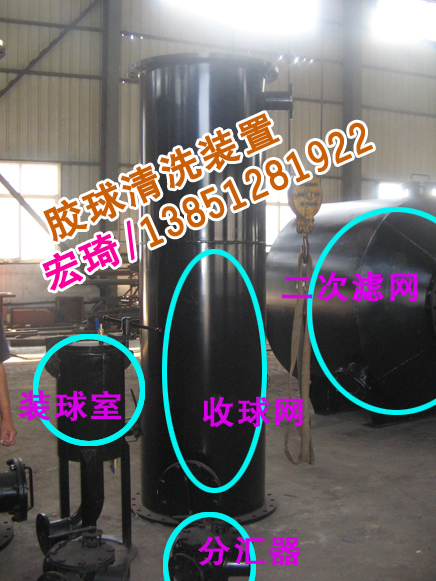 膠球清洗裝置技術特點及改造實例:我公司有一直重視研究膠球清洗裝置,并有生產(chǎn)膠球清洗裝置的豐富經(jīng)驗。大唐電廠2×200MW機組原來的膠球清洗裝置,自投運起收球率直在30%左右,經(jīng)原制造廠多次整改造,收球率還是在30%左右;電廠經(jīng)多方考察,選中我公司,經(jīng)我公司實地考察,根據(jù)該廠凝汽器的工況設計制造了SFG收球網(wǎng),安裝上后經(jīng)調(diào)試,一次收球率97%,自投運至今收球率一直保持在96%以上。湘潭電廠2×300MW機組原來的膠球清洗裝置的情況與電廠一樣,經(jīng)我公司改造了收球網(wǎng)和對凝汽器堵死角改造后,收球率達到90%以上。
