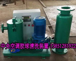 中央空調膠球清洗裝置是一種在制冷機組運行時,通過物理的辦法自動在線清洗冷凝器換熱管內壁的設備。通過對橡膠球體的噴注和回收,實現周期清洗換熱管道。一旦安裝該系統,可以減少水處理藥劑的使用量,同時提高機組的制冷效率,節約電能。
