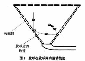 3)對(duì)1號(hào)機(jī)組收球網(wǎng)進(jìn)行檢查發(fā)現(xiàn)收球網(wǎng)的柵格上卡有部分膠球,膠球在收球網(wǎng)上已變形,卡粘的膠球已使得凝汽器循環(huán)水出口壓力上升0.02 MPa。此外收球網(wǎng)底部膠球管道也已被膠球完全堵住,這也是I號(hào)機(jī)組收球率為0的原因。通過與設(shè)備廠家的分析,并進(jìn)行膠球在收球網(wǎng)中的水力模型試驗(yàn)四(見圖1),判斷出由于凝汽器循環(huán)水出口壓力偏高(一般凝汽器循環(huán)水出口壓力為0.1MPa,而本公司凝汽器循環(huán)水出口壓力是0.12MPa),造成膠球在收球網(wǎng)內(nèi)部因速度過快沖擊收球網(wǎng)柵格而旋轉(zhuǎn),不能及時(shí)且順利的落人收球網(wǎng)底部,被及時(shí)送人收球泵人口,使得膠球回不到裝球室,致使該裝置收球率很低。