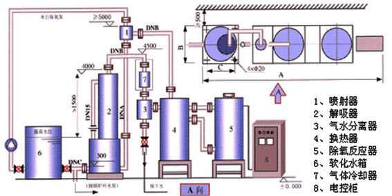4、當(dāng)除氧水溫超過40℃時(shí),應(yīng)在解析器氣水分離器的管路上加設(shè)冷凝器,用戶可提出要求由我公司配合。