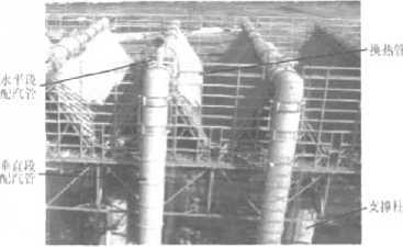 先對排汽管、配汽母管和配汽管(圖5)進行人工沖洗和清理。排汽管和配汽母管、配汽管直徑較大,先在內(nèi)部搭設架子,用電動鋼絲刷對管壁進行徹底清理,再從上往下用高壓水槍進行沖洗,將雜質(zhì)沖到配汽母管和排汽管水平段,然后徹底清除排汽管、配汽母管和配汽管水平段所有顆粒雜質(zhì)。另外,清理配汽管時,不允許雜質(zhì)進入換熱管內(nèi)。