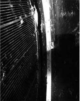 在機組C修中,通過液壓千斤頂對收球網網板進行初步固定,同時利用乙炔焰配合大錘敲擊進行網板形狀矯正,通過火烤、捶打和液壓裝置固定等矯正手段,使得修后收球網網板的中間間隙均小于2mm,如圖5所示,保證了運行期間膠球不會通過間隙漏至長江。