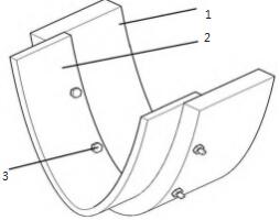故經過題攻關,發明了收球網與循環水管道間的一種新型密封結構,如圖6所示。圖6中1號部件為剛性材料、2號部件為柔性材料,其通過部件3(螺栓)緊固;鋼板和聚四氟乙烯材料的復合固定,既保證密封的強度、又保證密封的柔韌性,防止收球網在轉動過程中的卡澀。