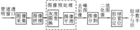 本文軟件模塊的任務(wù)就是從一周期的連續(xù)圖像中自動(dòng)檢測(cè)出所有膠球的數(shù)量及磨損程度。其軟件檢測(cè)框圖如圖3所示。先通過(guò)工業(yè)攝像機(jī)采集膠球連續(xù)圖像,并根據(jù)時(shí)間順序存儲(chǔ);然后利用圖像拼接算法去除每?jī)煞B續(xù)圖像之間的重復(fù)部分,再進(jìn)行灰度變換、圖像平滑等一系列預(yù)處理過(guò)程去噪,去噪后采用基于小誤差分割法的灰度圖二值化變換對(duì)圖像進(jìn)行分割,得到目標(biāo)明確的分割圖像;后,在此基礎(chǔ)上,進(jìn)行膠球位置定位,獲得膠球的數(shù)量及磨損狀況。